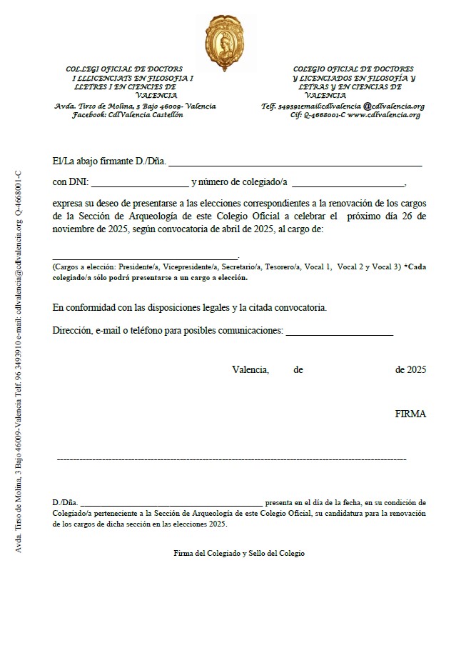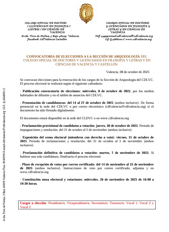 CONVOCATORIA ELECCIONES SECCIÓN ARQUEOLOGÍA