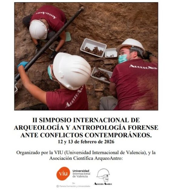 Os informamos de la celebración del II Simposio Internacional de Arqueología y Antropología forense ante conflictos Contemporáneos, los días 12 y 13 de febrero, en colaboración con la VIU y ArqueoAntro (colegiados en el CDLVC) .